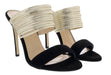Ventutto Black/Gold Open Toe Slip On High Heel Sandals-