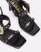 Versace Jeans Couture Womens Black Studded High-Heel Sandals with Gold Buckle