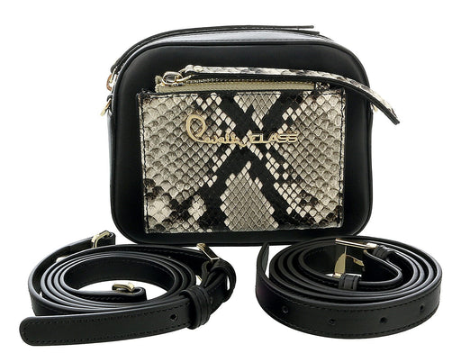 View full detailsRoberto Cavalli Class Black Snakeskin Textured Susan Small Belt Bag / Shoulder Bag