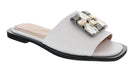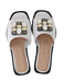 Add a sparkling touch of refinement to your summer shoe collection courtesy of these sandals. Designed in smooth leather, the slipper-inspired shoe features a peep-toe front lavishly adorned with a scattering of crystal embellishments. Perfect for warm-weather soirées,they offer the perfect partner toa figure-hugging dress for an ultra-chic ensemble.