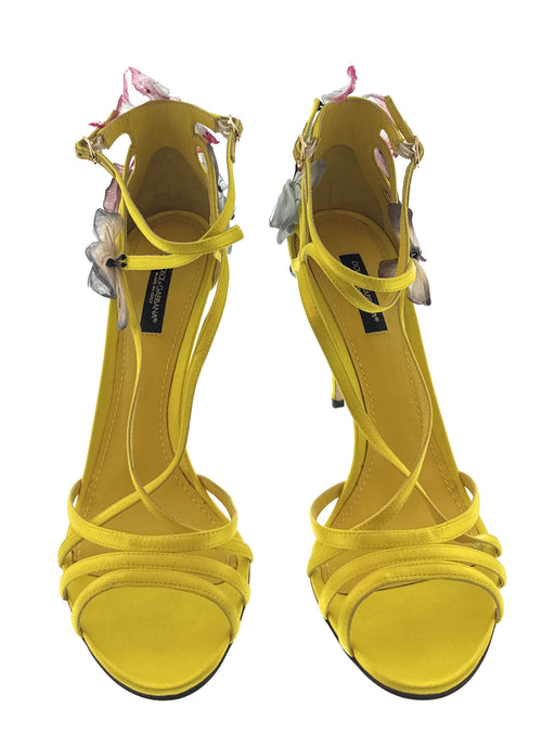 View full detailsDolce & Gabbana Yellow Floral Embellished Stiletto Sandals-EU38