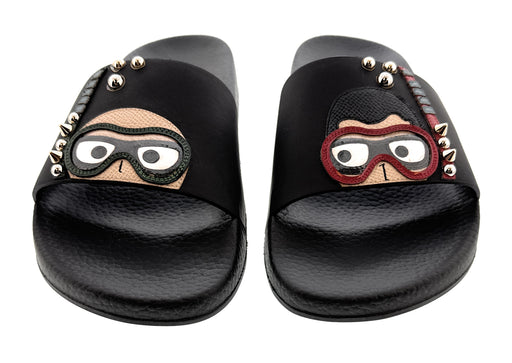 View full detailsDolce & Gabbana Black Cartoon-Detail Slides with Stud Embellishments -EU38