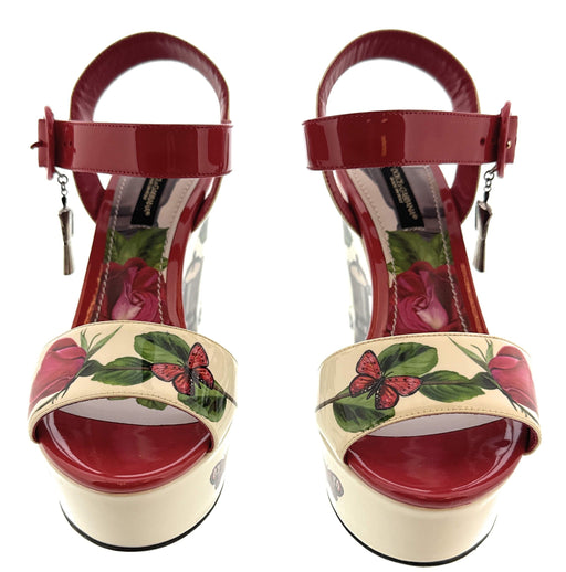 View full detailsDolce & Gabbana Multicolor White Rose Garden Wedge Sandals-36