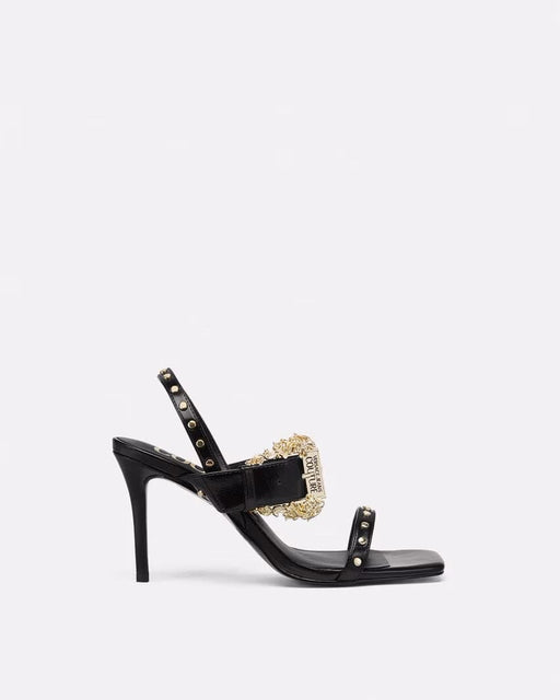 View full detailsVersace Jeans Couture Womens Black Studded High-Heel Sandals with Gold Buckle