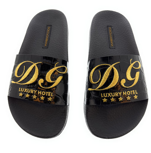 View full detailsDolce & Gabbana Black Croco Embossed Strap Pool Slide-35