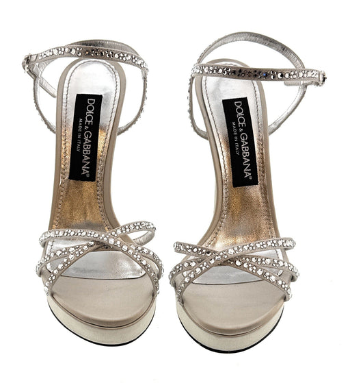 View full detailsDolce & Gabbana Crystal-Embellished Silver Platform Sandals -EU38