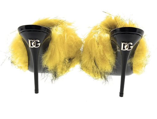 View full detailsDolce & Gabbana Yellow Feather Mule Sandals with Black Accents -EU36