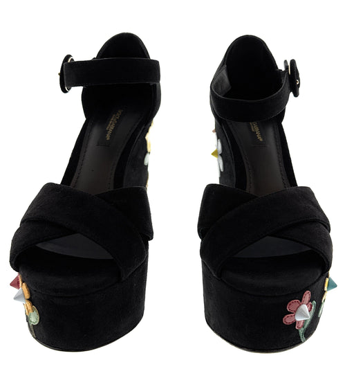 View full detailsDolce & Gabbana Floral Embellished Black Velvet Platform Sandals -EU35
