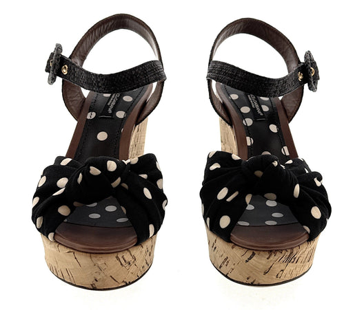 View full detailsDolce & Gabbana Polka Dot Cork Wedge Sandals -EU36