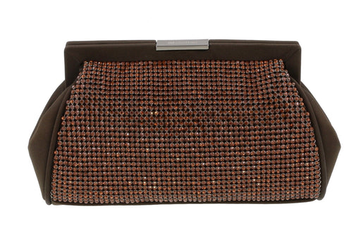 Scheilan Brown Fabric Double Sided Crystal Paneled Clutch/Shoulder Bag