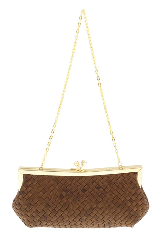 Scheilan Brown Fabric Weave Knot Clutch/Shoulder Bag