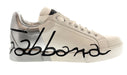 Dolce & Gabbana White Graffiti Logo Leather Sneakers-EU35