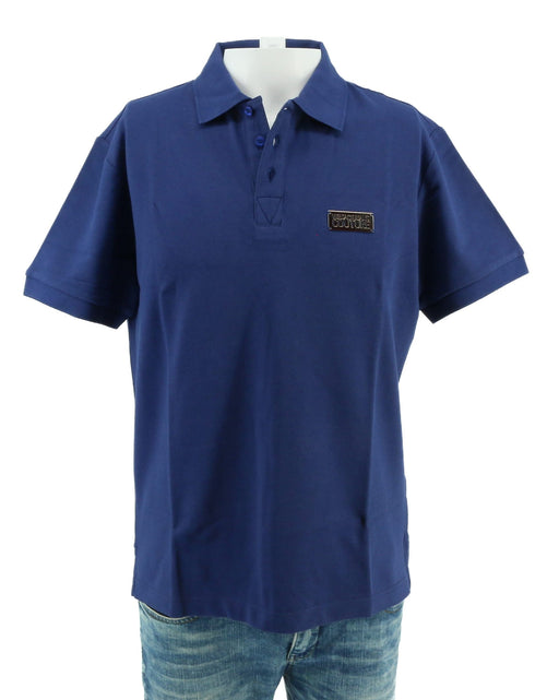View full detailsVersace Jeans Couture Steel Blue Mens Polo Shirt With Metal Logo Detail