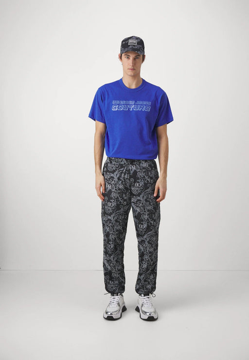 Infused with streetwear edge and luxury branding, this electric blue Versace Jeans Couture T-shirt makes a bold statement with a futuristic logo pr...