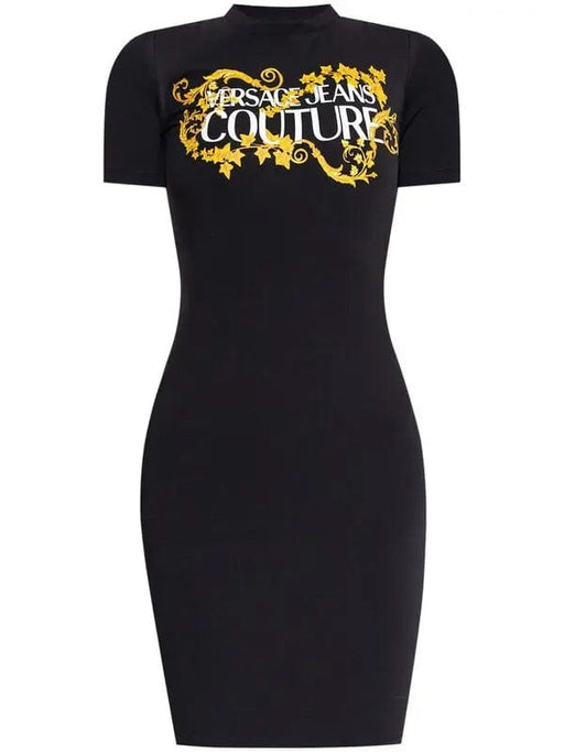 View full detailsersace Jeans Couture Black Fitted Logo Dress with Gold Baroque Print