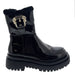 Command attention with these bold ankle boots, featuring a structured silhouette, chunky sole, and an opulent gold-tone baroque buckle with fuzzy interior. Crafted in smooth black faux leather, they offer a luxurious edge perfect for modern streetwear or elevated casual looks.
