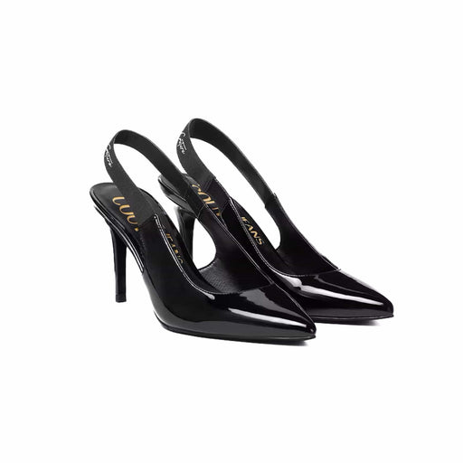 Black Patent Pointed Slingback Heels with Elastic Logo StrapFEATURES Elevate your footwear rotation with these black patent slingback heels, combin...