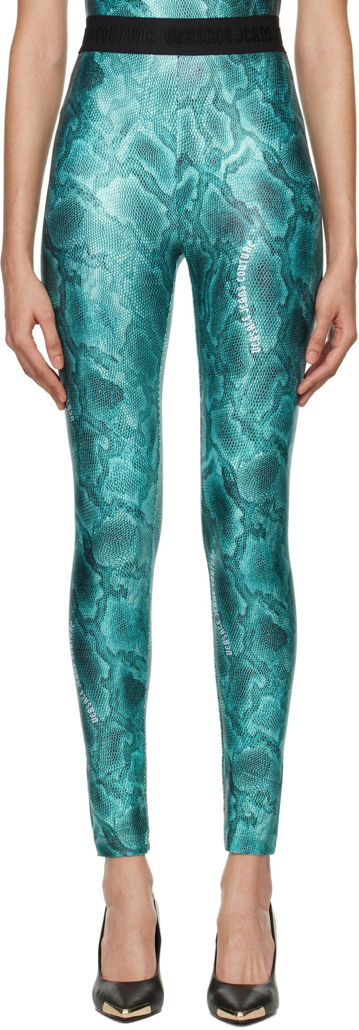 View full detailsVersace Jeans Couture Aqua Lizard Print High-Waist Leggings