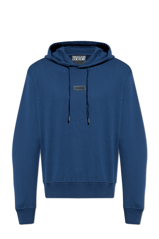 View full detailsVersace Jeans Couture Steel Blue Cotton Mens Metallic Chest Logo Hoodie