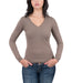 Real Cashmere Brown V-Neck Cashmere Blend WomensSweater