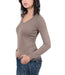 - V-neckline with slightly rolled collar detail -Ribbed cuffs and hem - Long sleeves - Fitted style-Perfect for layering