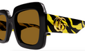 Oversize bold acetate shapes with 45° hinged temples embellished through unique colors for a never-ending diva look. Oversized bold acetate shape. Gold GG interlocking logo in the temple. Commercial yet Fashion color palette with striped skus embellished through a glitter effect.