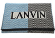 Lanvin 100% Wool Scarf – Chevron Pattern in Blue and Black, Bold Logo Design